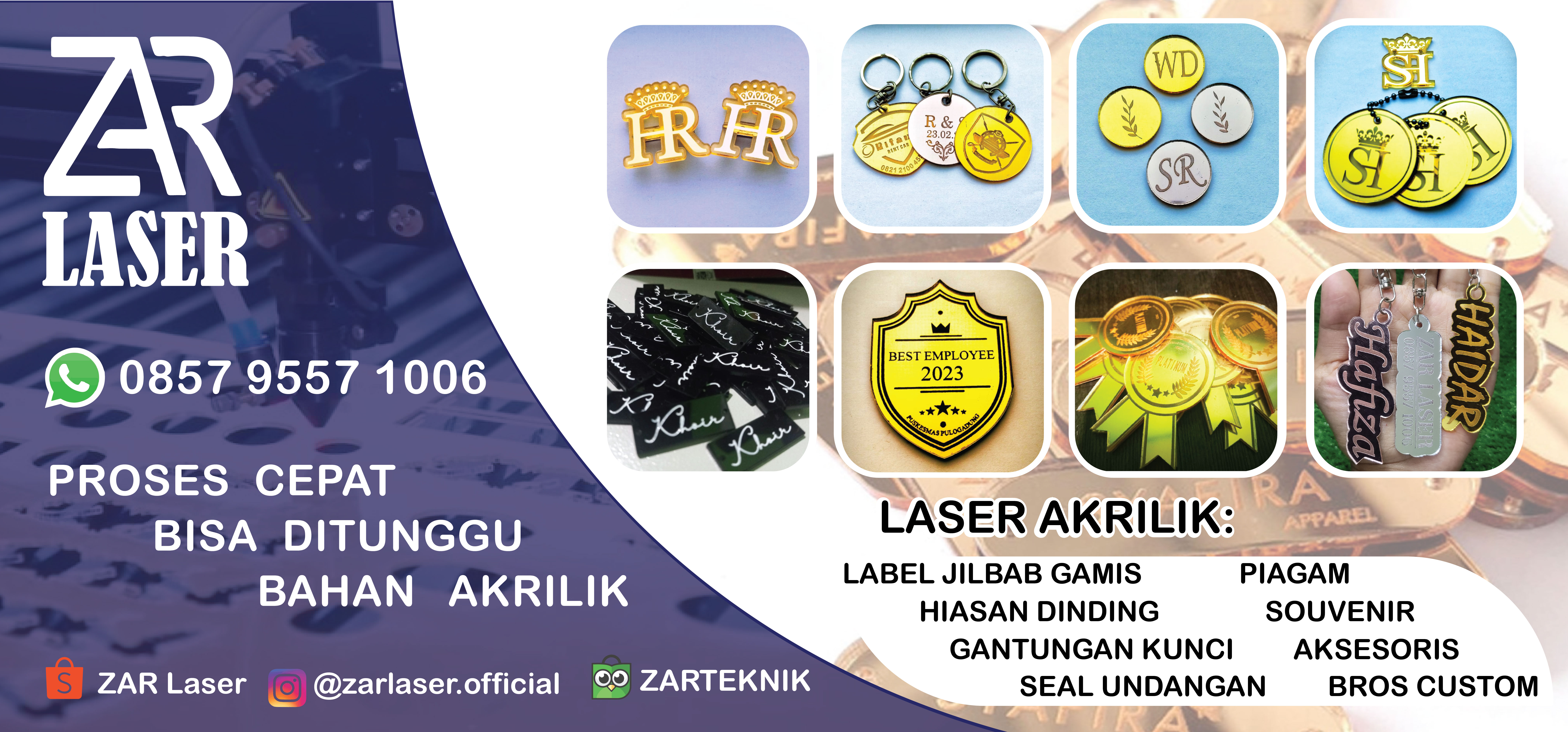 Zar Laser adalah penyedia jasa pembuatan akrilik custom dan print UV dengan hasil presisi tinggi & tampilan elegan. Kami memproduksi berbagai kebutuhan branding, hadiah, hingga souvenir profesional untuk event, perusahaan, instansi, sekolah, dan perorangan.